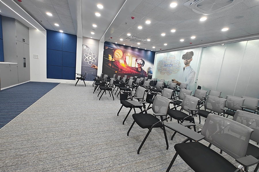 The clubhouse is designed for leisure, wellness, and community living. Set beside lush green spaces, it features an infinity-edge pool, gym, indoor games, a private theatre, kids’ room, yoga deck, and party lounge—offering a complete lifestyle experience within the Urvisha residential complex.